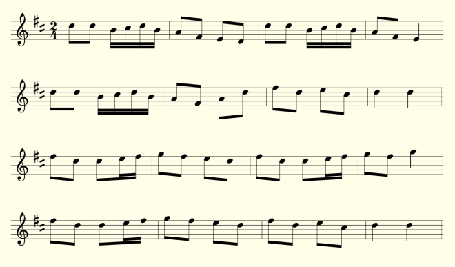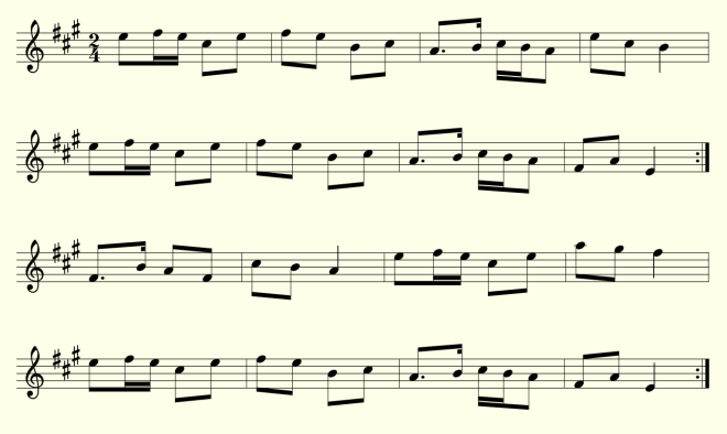 We start by choosing a classic set of three Irish polkas, beginning with Egan’s Polka …